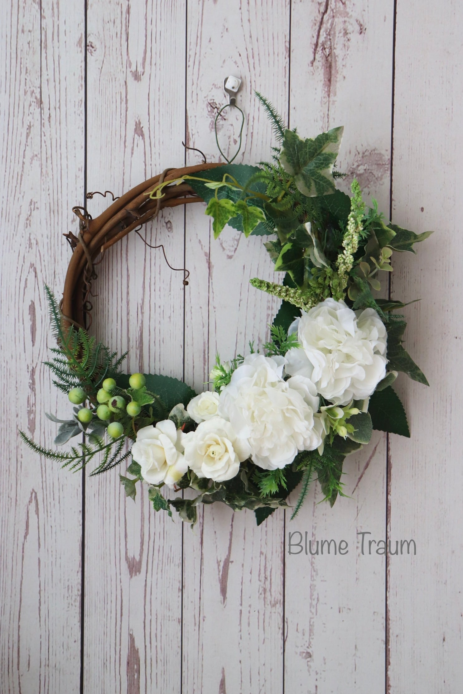 ★Blume Traum★27cm ホワイト×グリーンのハーフリース、新居祝い、インテリア、アートフラワー、造花
